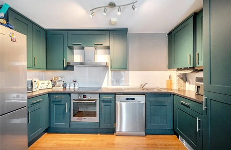 The accommodation is well arranged and accessed via a welcoming entrance hall, which leads through to the principal rooms. To the rear, a bright and spacious open-plan kitchen and living area provides an ideal space for both everyday living and entertaining, with a natural flow and outlook. There are two well-proportioned bedrooms, offering flexibility for use as sleeping accommodation, a home office, or guest space. The layout is completed by a modern bathroom, all thoughtfully positioned to maximise practicality and comfort.