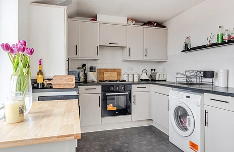 A well-presented second-floor apartment offering a bright and practical layout, ideal for modern living. The property features a spacious open-plan kitchen and reception area, creating a sociable hub with ample natural light and room for both dining and relaxation.