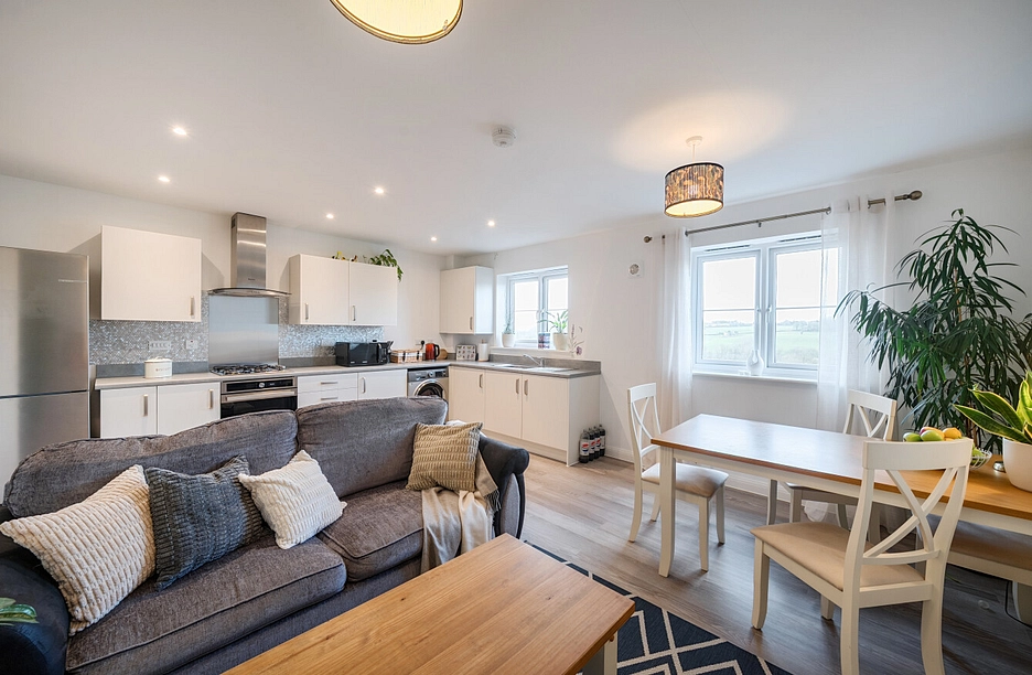 The property features a welcoming entrance hallway leading through to a spacious open-plan kitchen and reception room. This sociable living area benefits from plenty of natural light and provides an ideal space for both relaxing and entertaining, with a well-arranged kitchen area offering ample worktop and storage space.