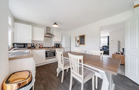 The ground floor features a welcoming reception room that provides a comfortable setting for both relaxation and entertaining. To the rear, a bright and practical kitchen/breakfast room serves as the heart of the home, offering ample workspace and direct access to the garden—perfect for everyday family living and summer gatherings. A convenient ground floor WC adds further practicality.